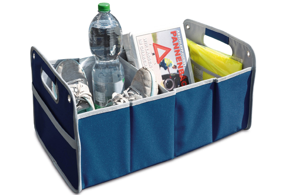 Ein Muss für jedes Auto: die faltbare Kofferraum-Tasche für jedes Auto. Erleichtert zum Beispiel den sicheren Transport und kann platzsparend zusammengefaltet werden.