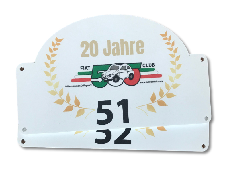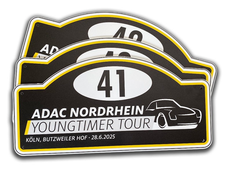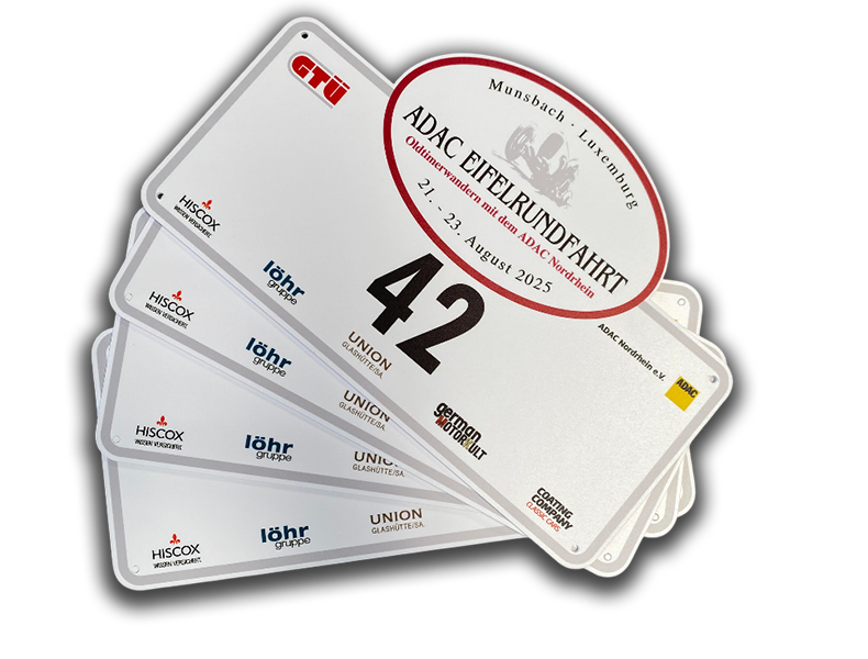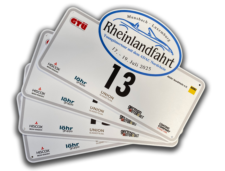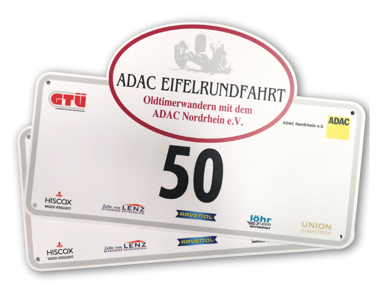 Ein klares Signal nach außen. Das Rallyeschild signalisiert die Zugehörigkeit Ihrer Teilnehmer und macht Ihre Veranstaltung auch für die Zuschauer sichtbar. Es ist somit unverzichtbarer Teil für das Erscheinungsbild aus einem Guss.